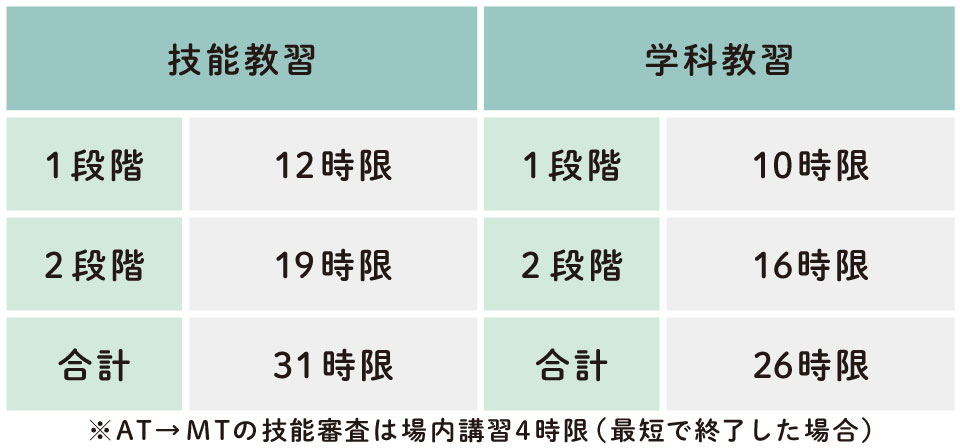 ※第二種普通(MT車)をご希望の方は、二種AT→二種MTの技能審査を受けてください。